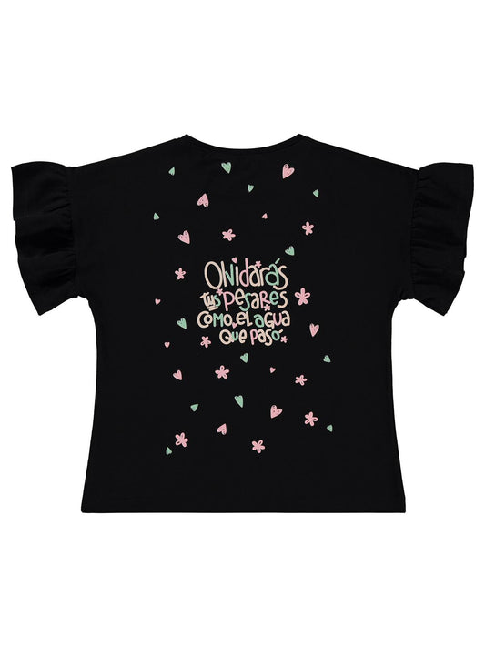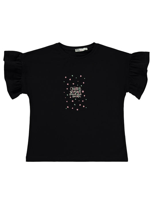 Civil girls valon kol 6-9 yaş tişört - siyah