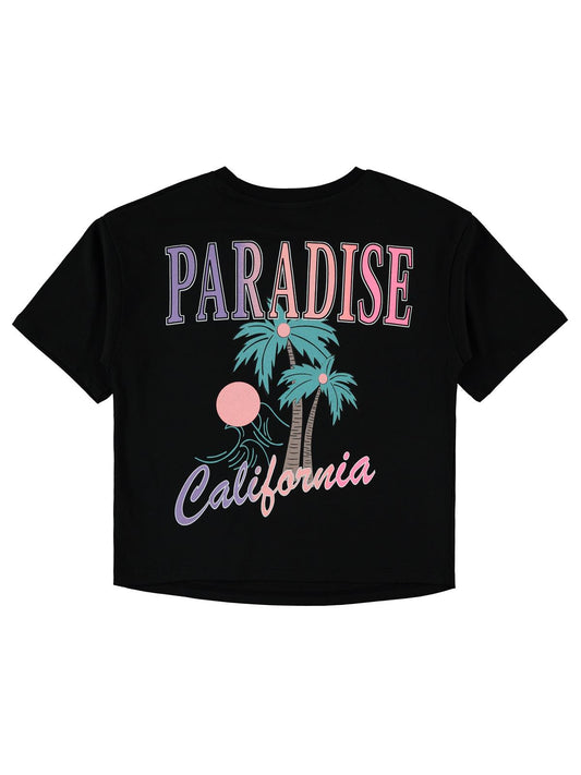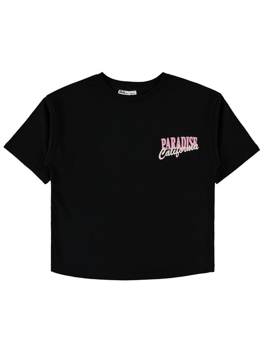 Civil girls palmiye baskılı 10-13 yaş tişört - siyah
