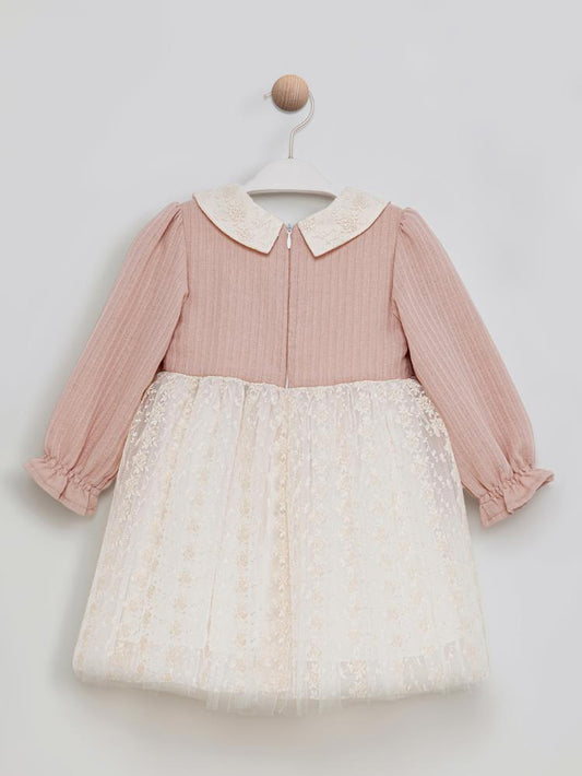 Bombili dantel detaylı kendinden bolerolu elbise 1-3 yaş jile ve elbise - pudra