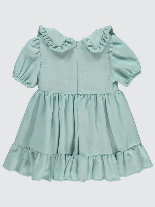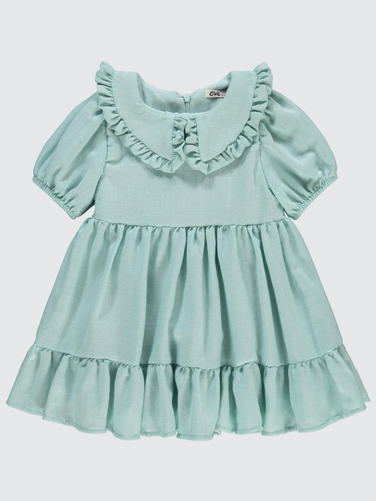 Civil girls yakası fırfırlı keten 2-5 yaş elbise - yeşil