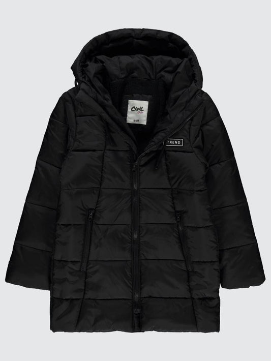 Civil girls uzun oversize şişme 10-13 yaş mont - siyah