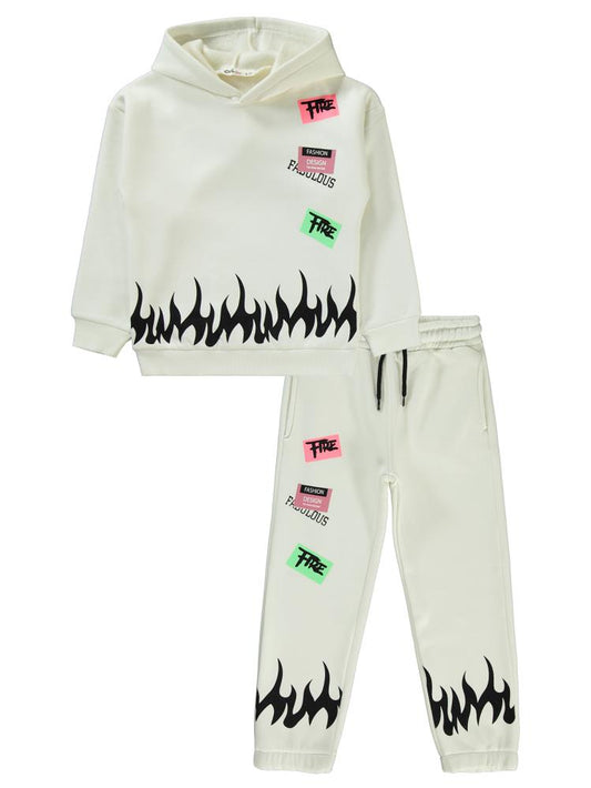 Civil girls alev baskılı 6-9 yaş eşofman takımı - ekru