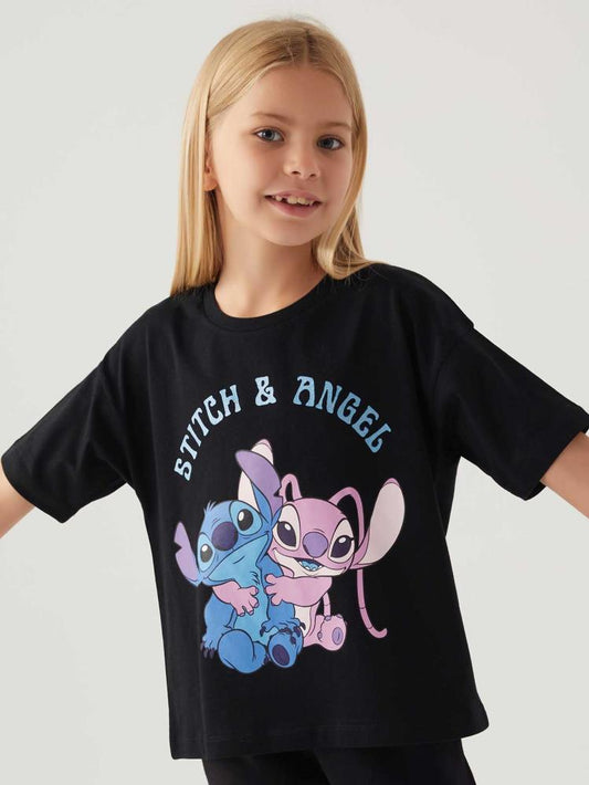 Roly poly stıtch kız çocuk 3-8 yaş t-shirt - siyah