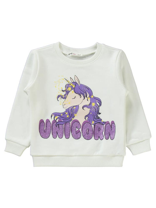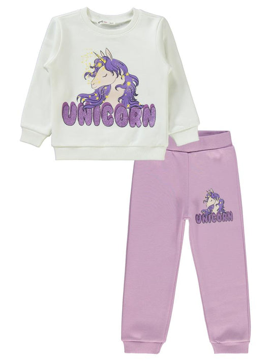 Civil girls unicorn baksılı 2-5 yaş eşofman takımı - ekru