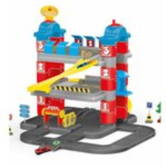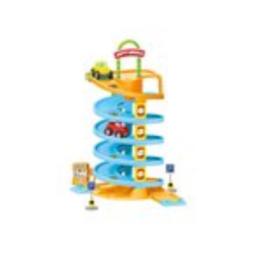 "3 katlı garaj oyun seti ile eğlenceli bir oyuna hazır olun! Graj setinde bulunan asansör, kaydırak, araba yıkama yeri, trafik levhaları...