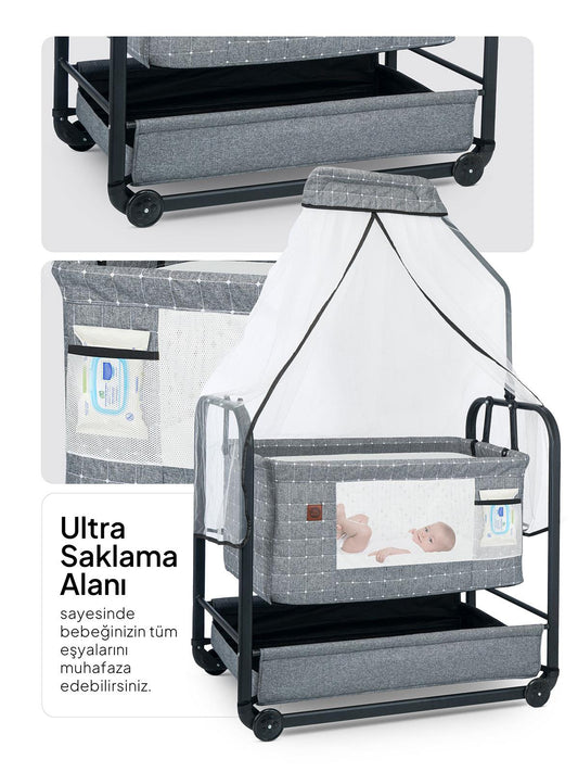 Şık ve kullanışlı bir beşik arayışında olanlar için özel olarak tasarlanmış olan ürünümüz, sağlam demir profil gövdesi ve kaydırmaz ayak...