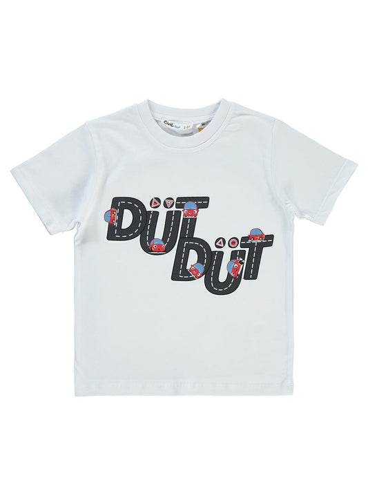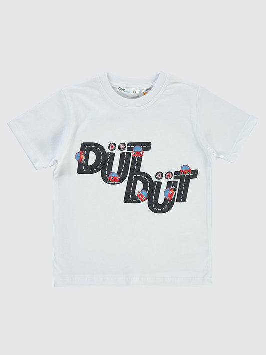 Kukuli dütdüt baskılı 2-5 yaş tişört - beyaz
