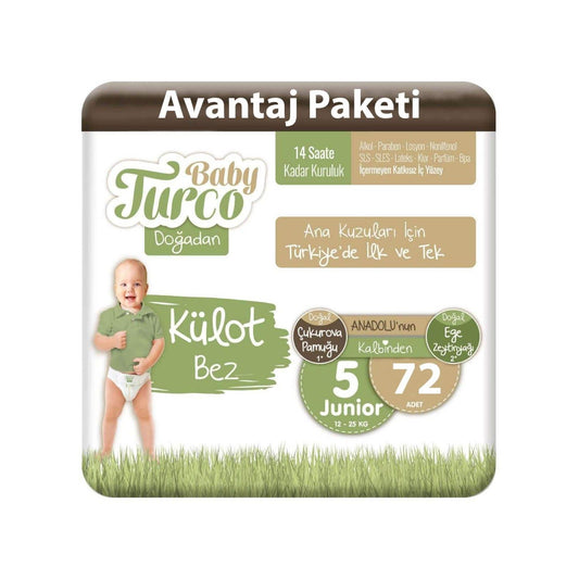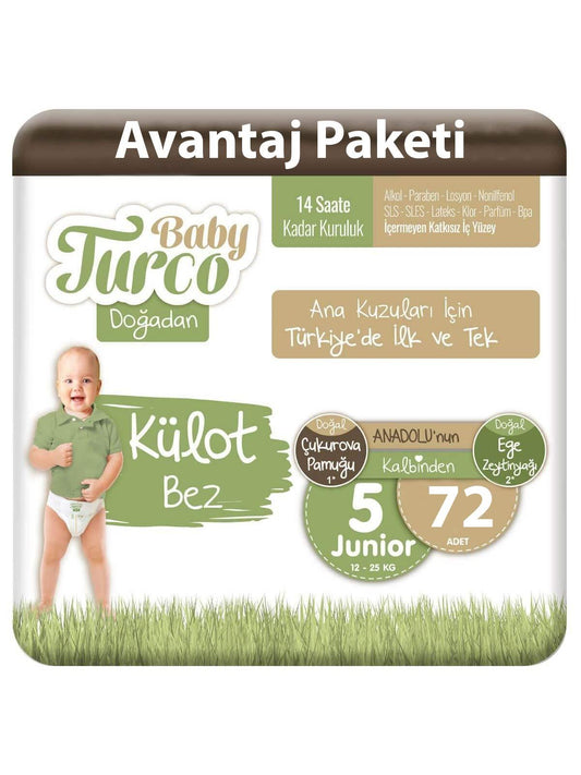 Baby turco doğadan külot bez 5 numara junior bebek bezi 72 adet