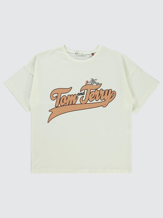 Tom and jerry 10-13 yaş tişört - ekru