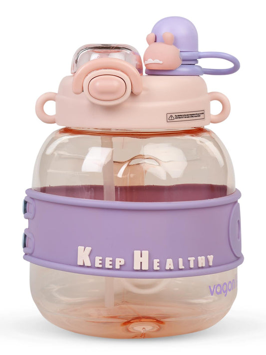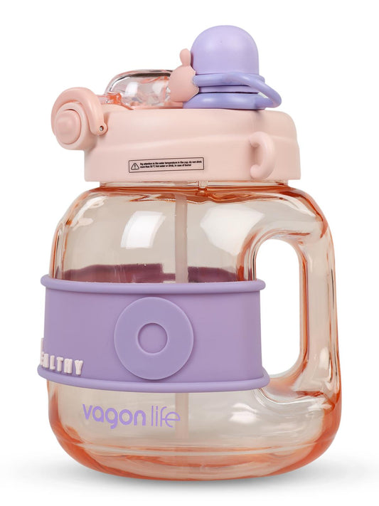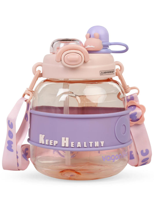 Vagonlife taşıma askılı pipetli çocuk su matarası 800 ml - pembe