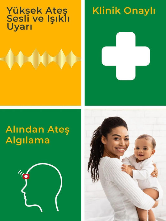 Yüksek Ateş Uyarılı Alından Temassız Kızılötesi Uzaktan Ateş Ölçer 3 Yıl Garantili 48615 Alından temassız hassas ateş alarmı Sesli ve...