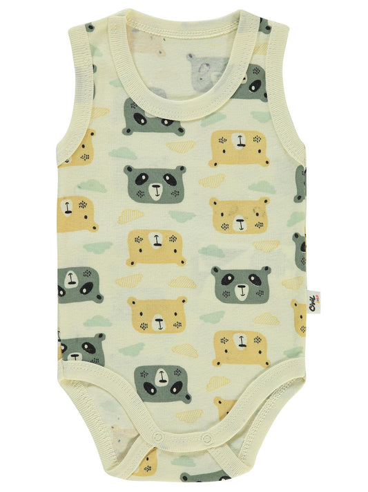 Civil baby ayıcık baskılı 0-3 yaş çıtçıtlı badi - ekru