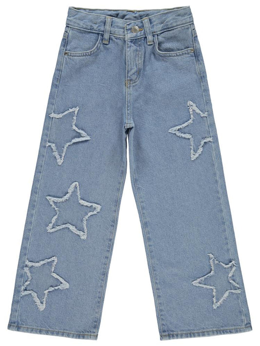 Civil girls yıldız nakışlı 6-9 yaş pantolon - mavi
