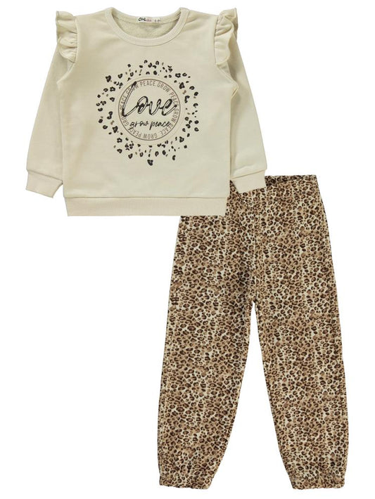 Civil girls love baskılı 2-5 yaş eşofman takımı - ekru