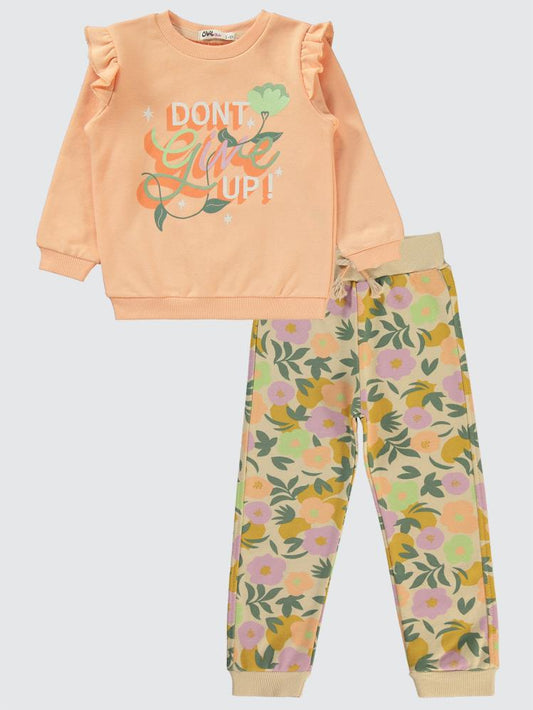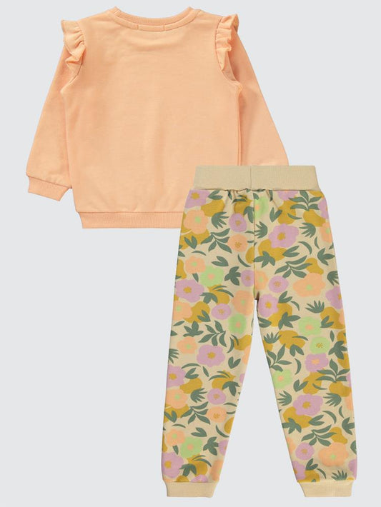 Civil girls floral baskılı 2-5 yaş eşofman takımı - pudra