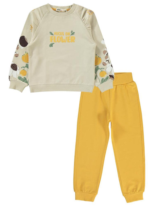 Civil girls focus on baskılı 2-5 yaş eşofman takımı - hardal