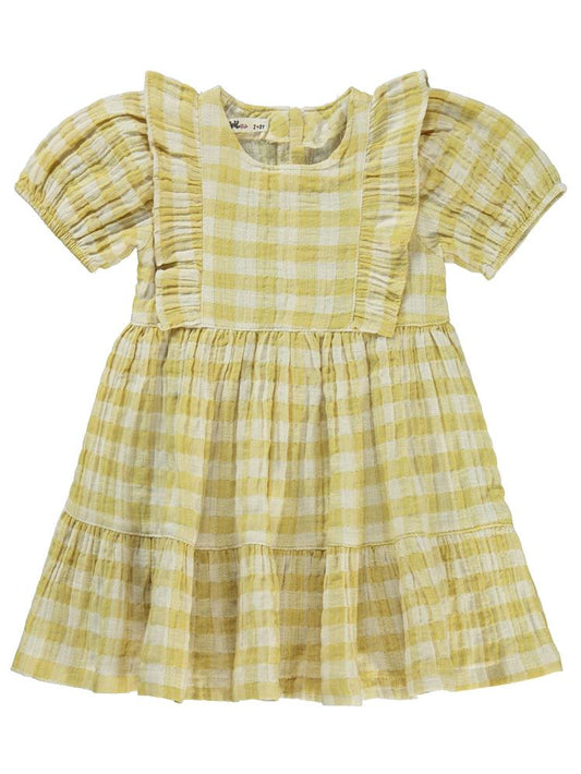 Civil girls ekose desenli 2-5 yaş elbise - sarı