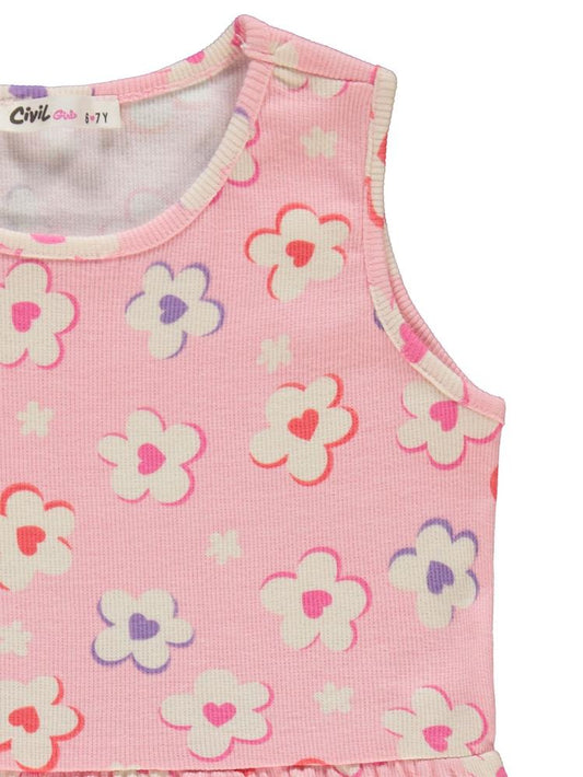 Civil girls çiçek baskılı 6-9 yaş elbise - pembe