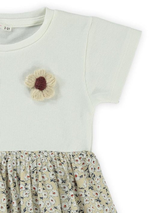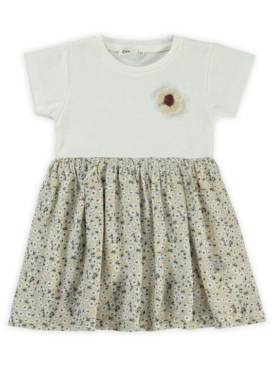Civil girls çiçek desenli 2-5 yaş elbise - bej