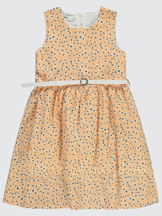 Civil girls leopar desenli 6-9 yaş elbise - pudra