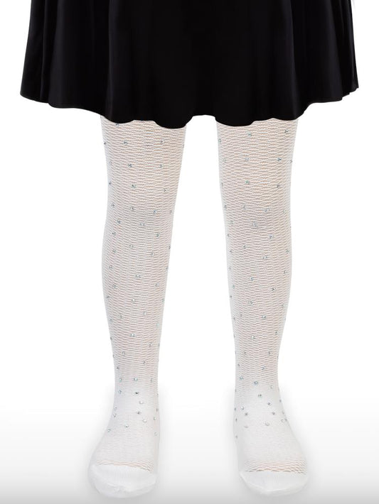 Civil girls file petek desen taşlı 2-12 yaş külotlu çorap - ekru