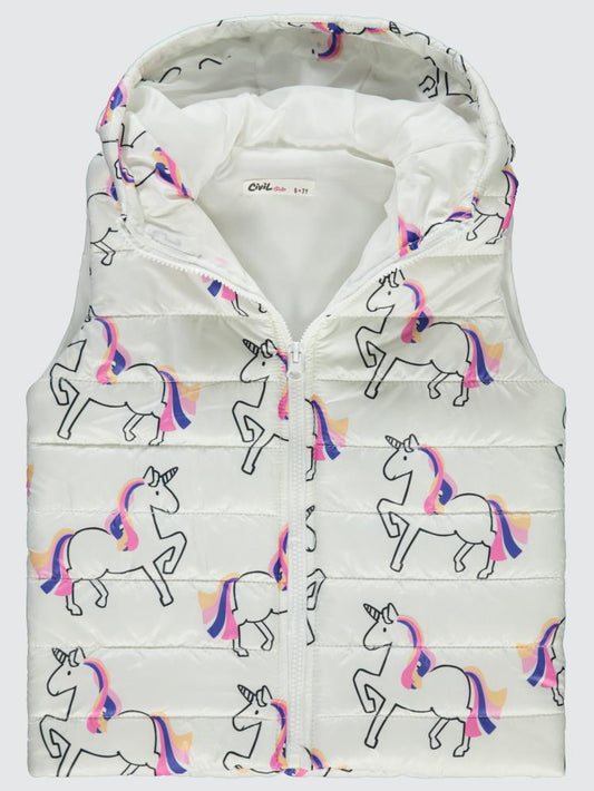 Civil girls unicorn baskılı 6-9 yaş yelek - ekru