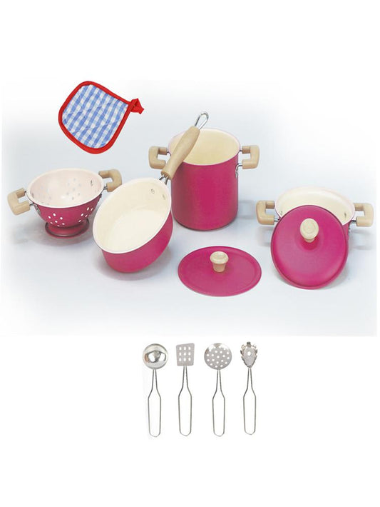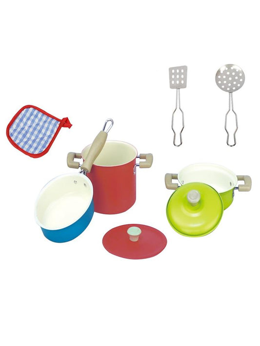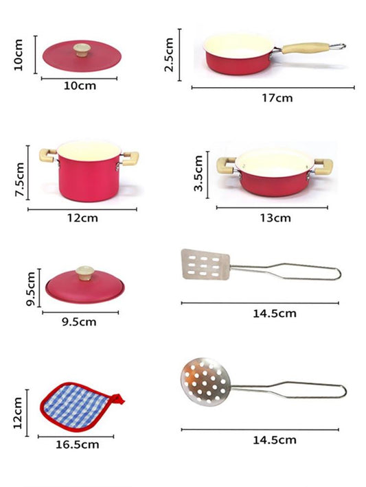 "Minik şeflerin mutfakta keyifli vakit geçirecekleri tencere tava seti! Emaye Tencere Seti 8 ParçaKutu Boyutu: 11x30x22 cm"