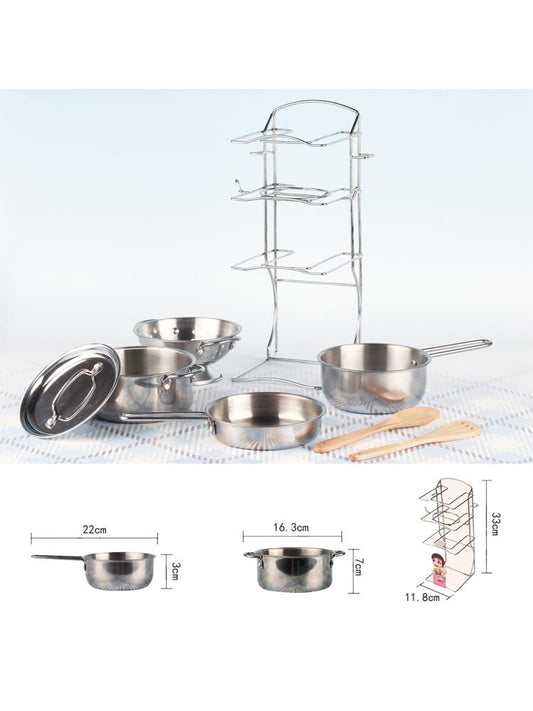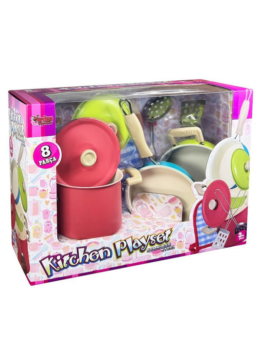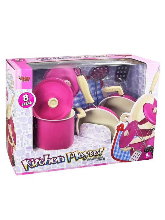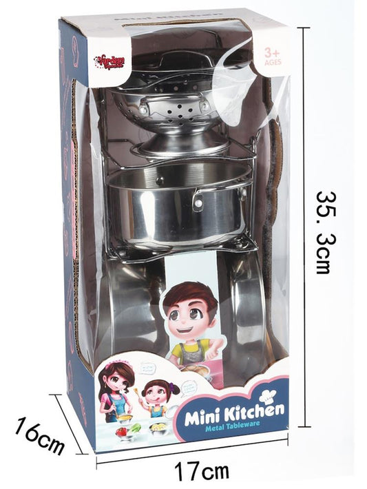 "Minik şeflerin mutfakta keyifli vakit geçirecekleri tencere tava seti! Çelik Tencere Seti 8 ParçaKutu Boyutu: 16x36x18 cm"