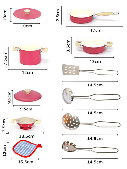 "Minik şeflerin mutfakta keyifli vakit geçirecekleri tencere tava seti! Emaye Tencere Seti 11 ParçaKutu Boyutu: 11x38x21 cm"