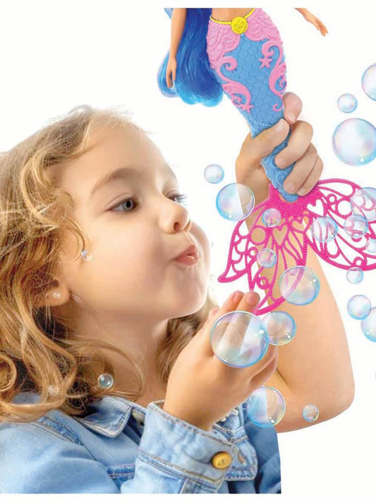Bu kadar baloncuk nereden geldi? Uzun mavi saçları, mavi ve pembe renklerindeki kuyruğu ile Dreameez Baloncuk Deniz Kızı, deniz...