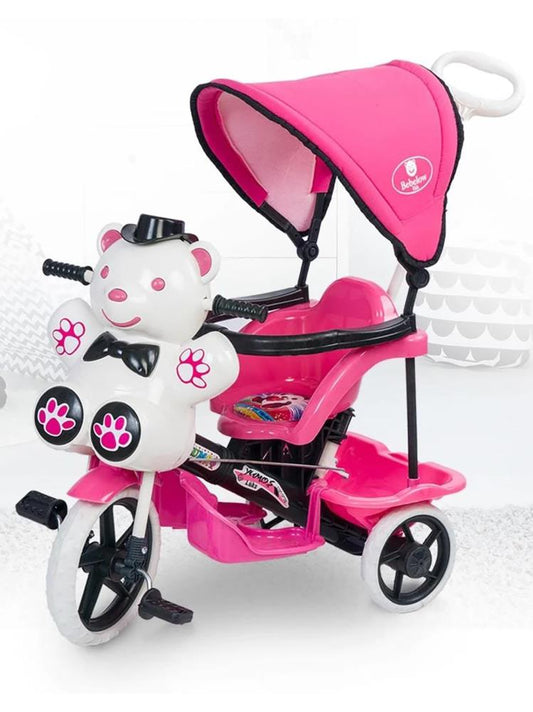 Bebelow yumoş itmeli ebeveyn kontrollü tenteli üç tekerlekli bisiklet - pembe