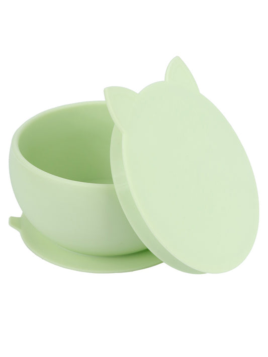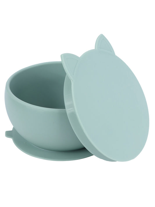 Pandish kitten vakum tabanlı kapaklı silikon kase - yeşil