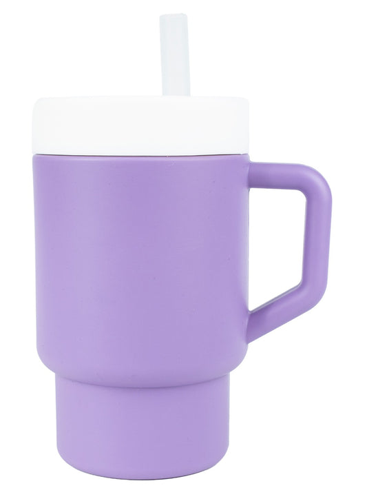Pandish mugley tek kulplu kapaklı pipetli silikon alıştırma bardağı - lila