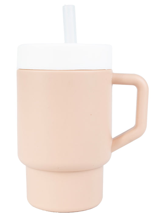 Pandish mugley tek kulplu kapaklı pipetli silikon alıştırma bardağı - pembe