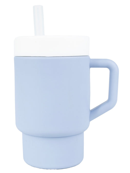 Pandish mugley tek kulplu kapaklı pipetli silikon alıştırma bardağı - mavi