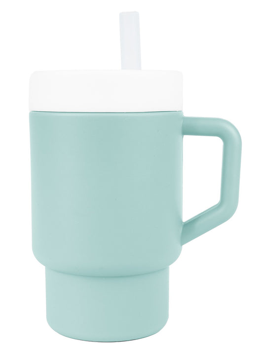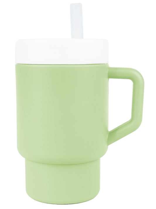 Pandish mugley tek kulplu kapaklı pipetli silikon alıştırma bardağı - yeşil