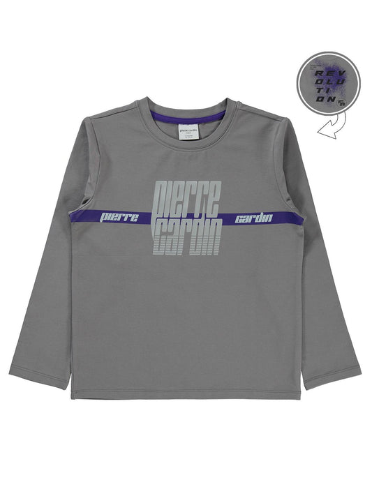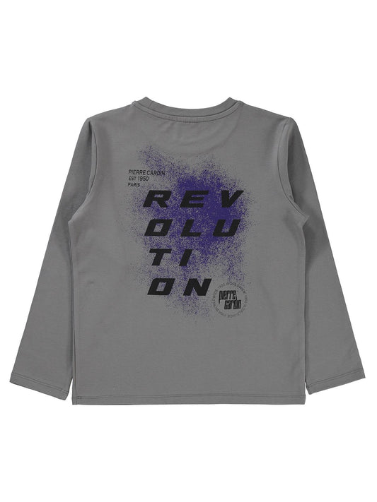 Pierre cardin sırtı revolutıon baskılı 6-9 yaş sweatshirt - gri