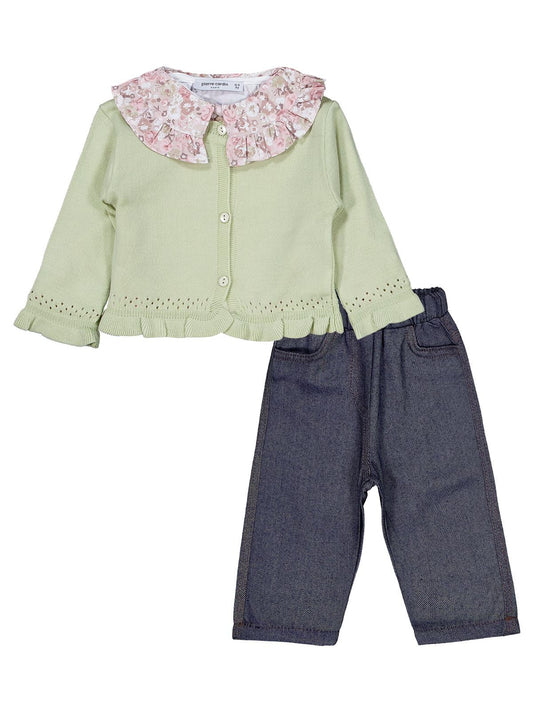 Pierre cardin triko hırkalı 3'lü 6-18 ay takım - yeşil