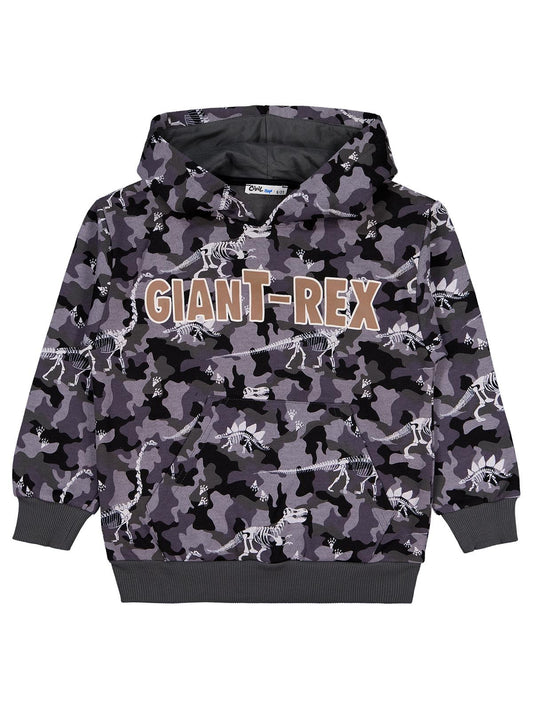 Civil boys giant rex baskılı kapşonlu 10-13 yaş sweatshirt - gri