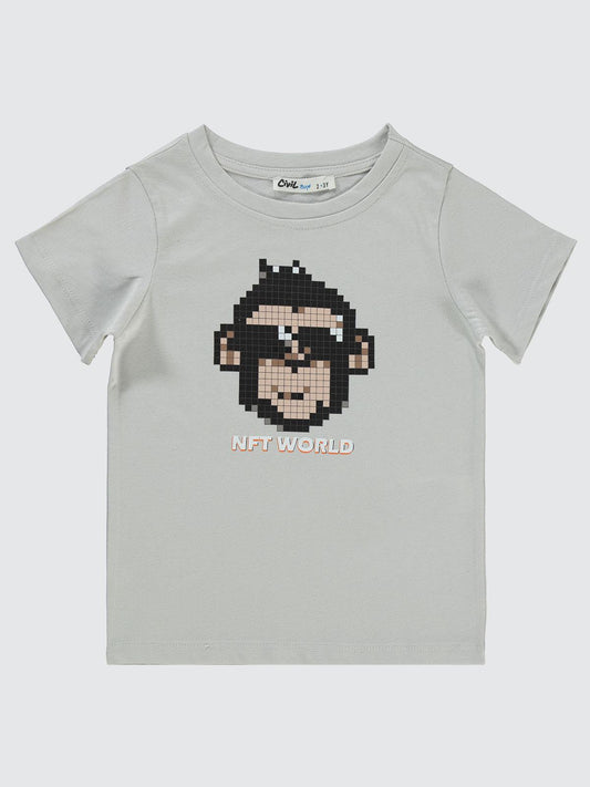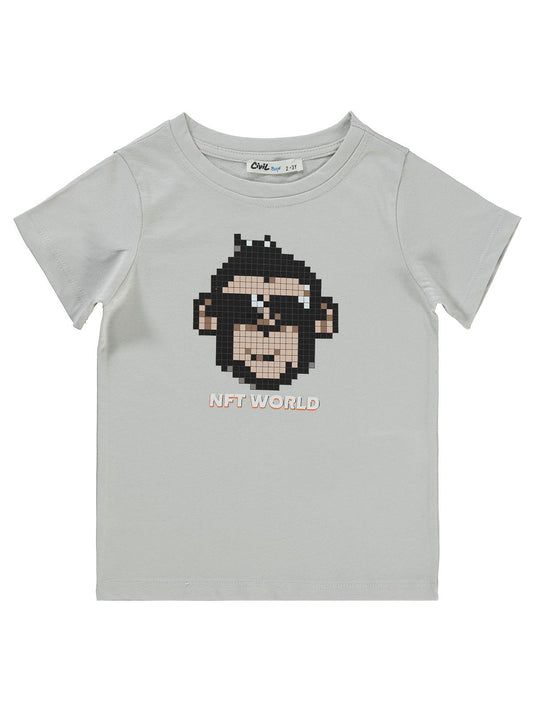 Civil boys nft worl maymun baskılı 2-5 yaş tişört - gri