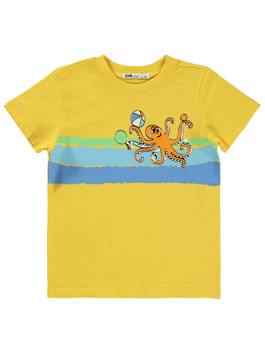 Civil boys ahtapot baskılı 2-5 yaş tişört - sarı