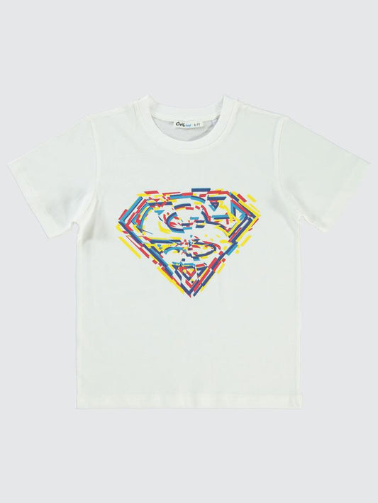 Superman logo baskılı 10-13 yaş tişört - ekru
