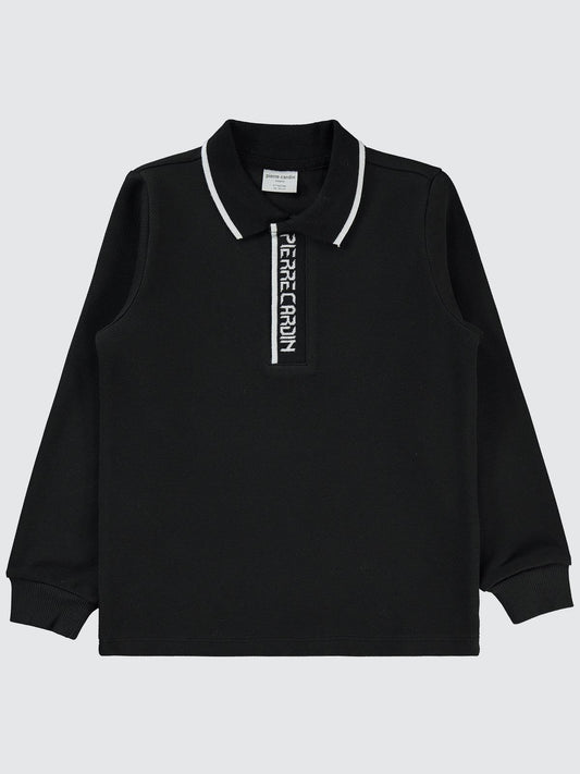 Pierre cardin yakası pıerre cardın baskılı 10-12 yaş sweatshirt - siyah