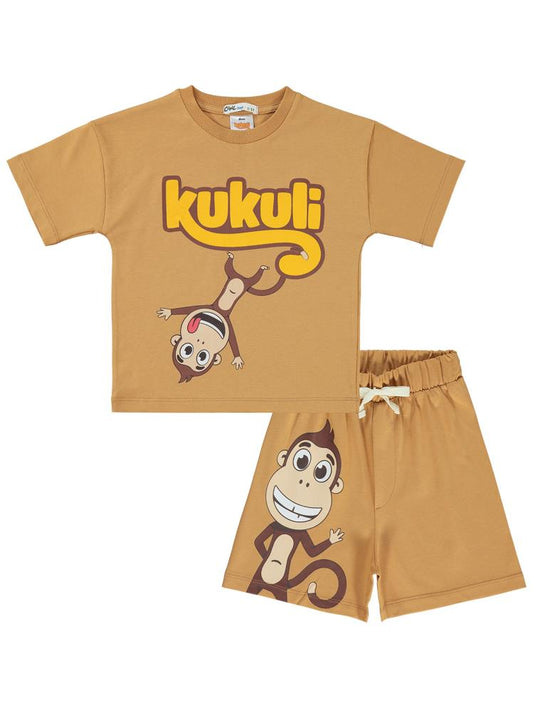 Kukuli baskılı 2-5 yaş takım - bej