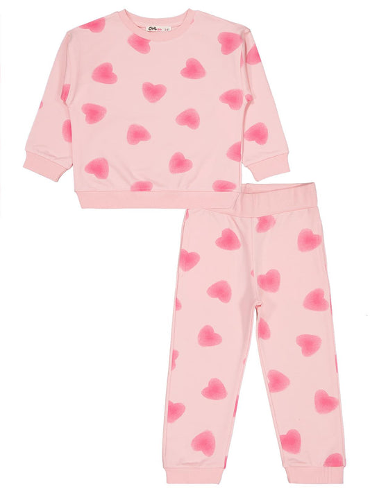 Civil girls kalp baskılı 2-5 yaş eşofman takımı - pembe