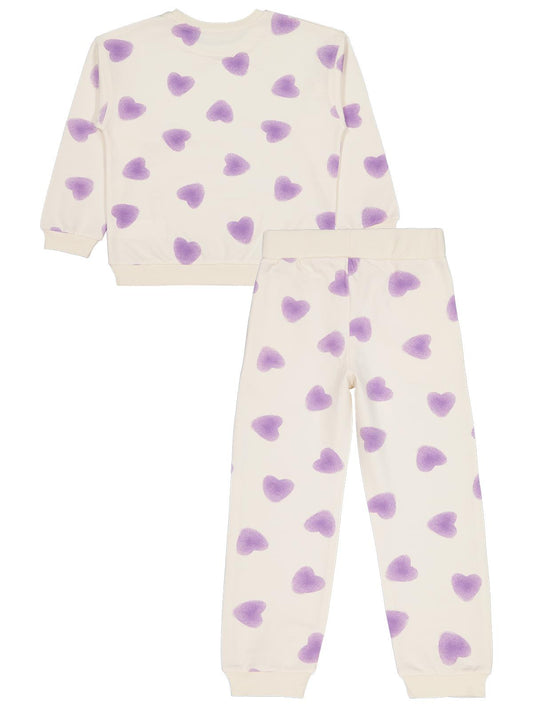 Civil girls kalp baskılı 6-9 yaş eşofman takımı - ekru