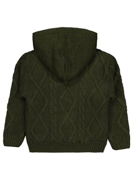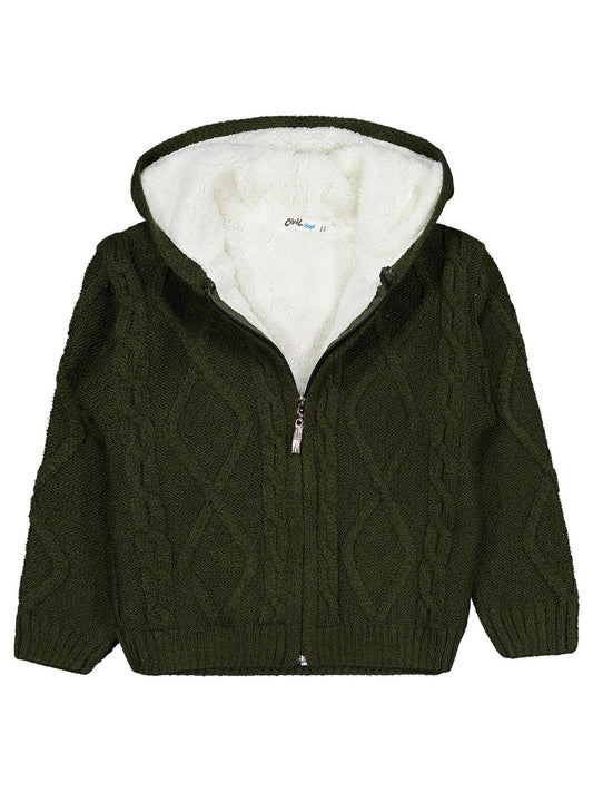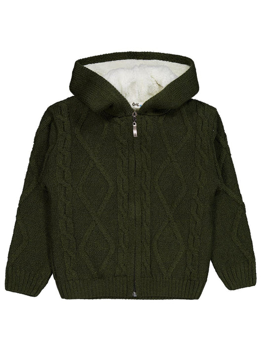 Civil boys saç örgülü i̇çi polarlı kapşonlu 2-5 yaş hırka - yeşil