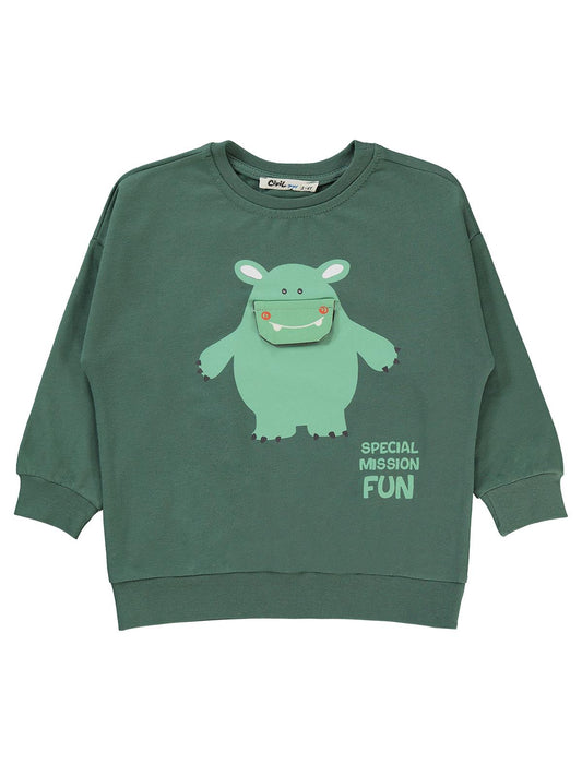 Civil boys specıal mıssıon fun baskılı 2-5 yaş sweatshirt - haki