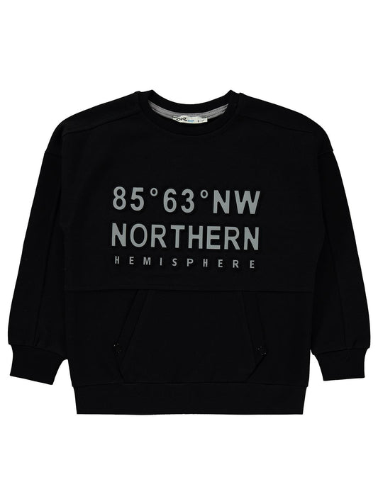 Civil boys northern baskılı 10-13 yaş sweatshirt - siyah