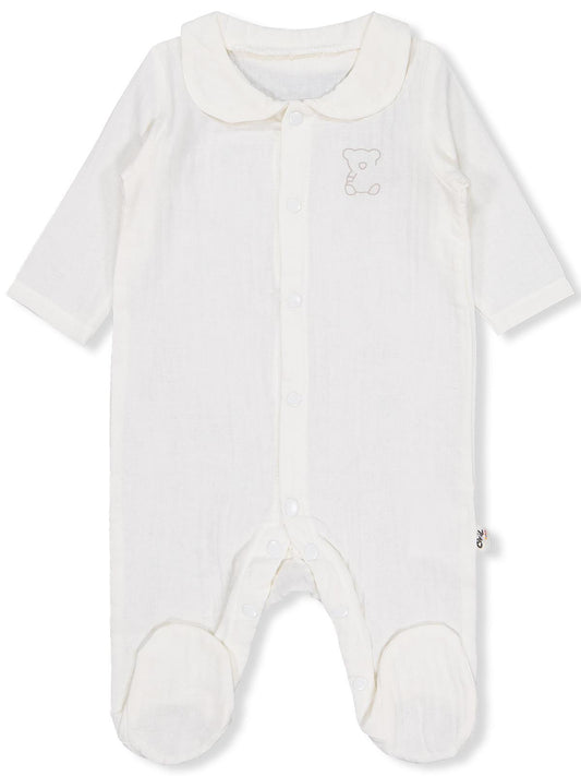 Civil baby yakalı ayıcık baskılı 1-9 ay tulum - ekru